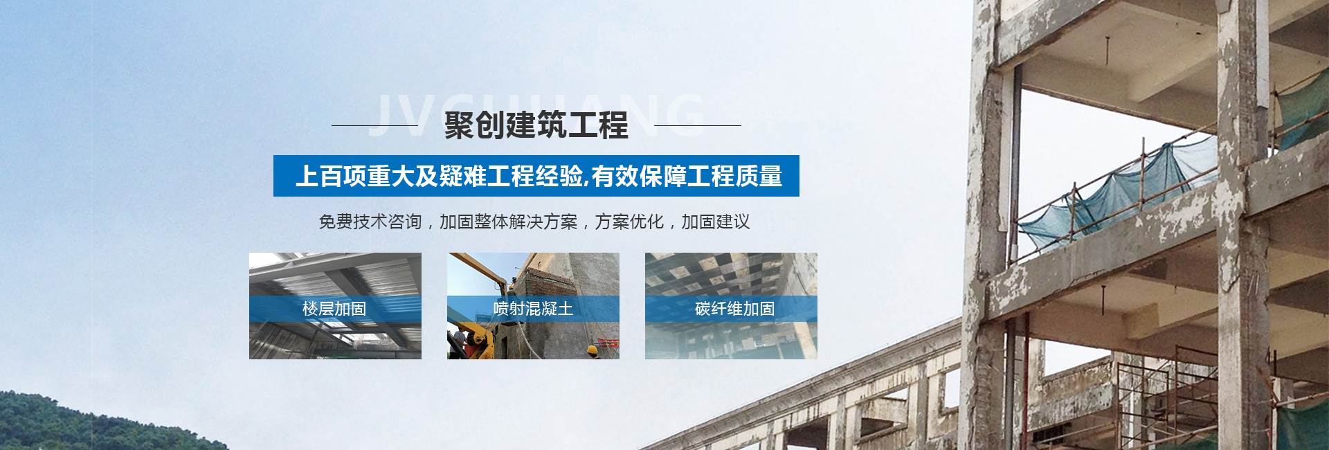 山西聚創(chuàng)建筑工程技術有限公司是一家涉足建筑工程改造加固、基礎加固、樓房糾偏、橋梁結構加固補強、鋼結構加固與安裝、靜力切割拆除、樓房增層、抗震加固、裝飾工程、工程檢測、設計、加固材料產(chǎn)品研發(fā)和新技術推廣或技術咨詢服務型加固企業(yè)等諸多領域。